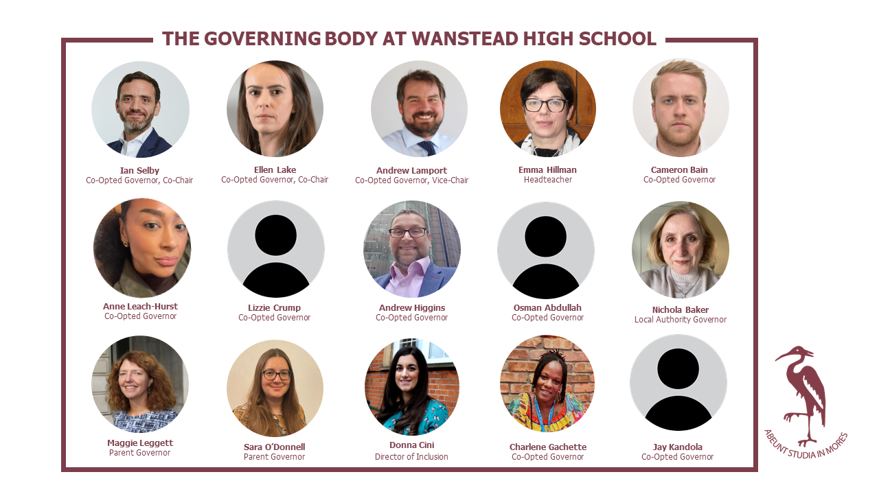 We invite you to take a moment to see what the role of a Governor is at Wanstead High School. We work very closely, together, with the Head Teacher and staff to provide the best education possible for our pupils.We are regularly looking for committed parents to become Governors.